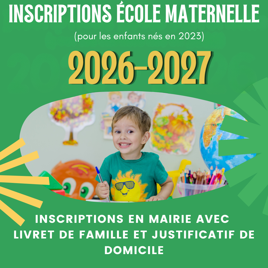 Les inscriptions à l'école maternelles sont ouvertes pour les enfants nés en 2023. Inscriptions en Mairie avec Livret de Famille et Justificatif de...